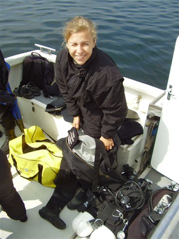 Kolejny był Svanchild. Wrak jest w rozsypce, ale robi super wrażenie. Oprócz sterty żelastwa (jak to w nurkowaniu wrakowym), widzieliśmy sporo ciekawej podwodnej zwierzyny. WojtkowiB udało się nawet własnoręcznie upolować flądrę (jakaś taka niemrawa była – nikt go przecież o taką zwinność nie podejrzewa). Figle w odmętach pewnie nie miałyby końca - ja jak zawsze zużyłam minimalną ilość powietrza, natomiast chłopaki postanowili poćwiczyć bezdechy, co im dość dobrze szło, bo na głębokości 22.3 m ciśnienie w butlach spadło im tylko kilka mikrobarów ;) - jednak nurkowanie zostało zakończone – tak to bywa jak ktoś we własne możliwości nie wierzy.