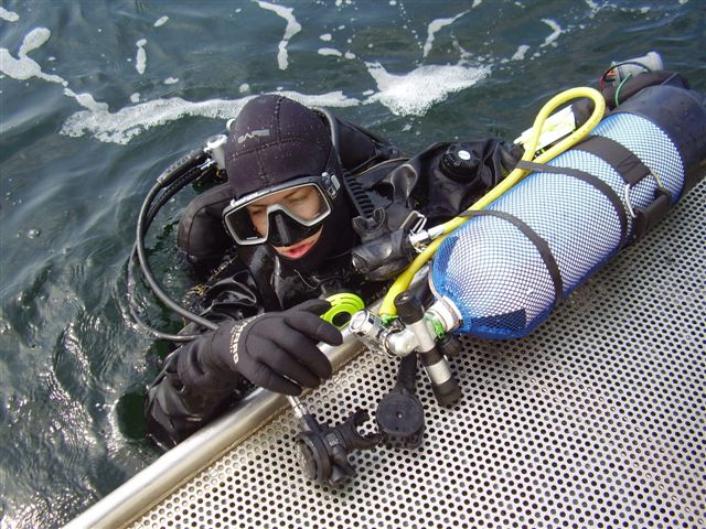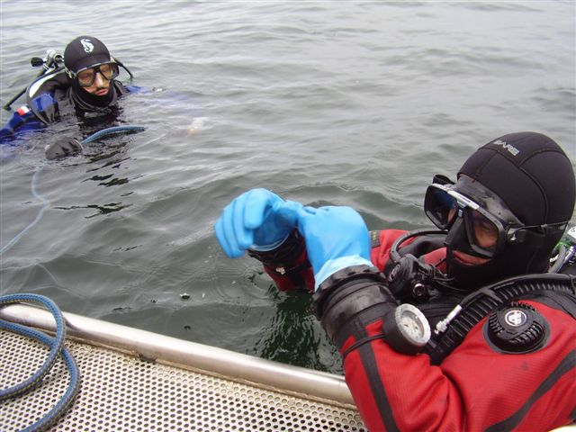 Gramoląc się na łajbę doszło do drobnego incydentu polegającego na wrzuceniu drabinki do wody – i w ten oto sposób WojtekN załapał się na jeszcze jedno gratisowe nurkowanie ”w poszukiwaniu drabinki”, które zakończyło się spektakularnym sukcesem. Tak naprawdę nie była to jedyna akcja poszukiwawcza tego wyjazdu – poprzednia była przeprowadzona przez obu Wojtków, tyczyła się zagubionej latarki, która również została odnaleziona.